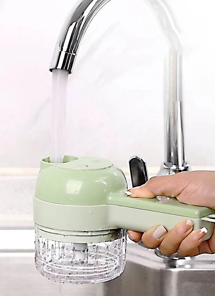 This handheld electric food processor makes cooking fast and easy. Slice, chop, peel, and mix in one tool. Perfect for garlic, peppers, carrots, onions, meat, fruits, and vegetables.